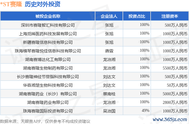 本站音书,笔据天眼查APP显露,*ST赛隆(002898.SZ)新增一王人对外投资事件,被投资公司为深圳市赛隆智汇科技有限公司,法定代表东谈办法旭,投资占比为100%。该公司从事软件和信息时刻办业绩,注册成本为500万东谈主民币。现在,*ST赛隆共存在对外投资11项,详见下表: