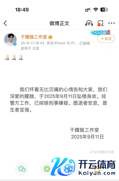 9月11日,自媒体博主“名捕快小宴”发布音问称,演员于空匮于当日凌晨在北京坠一火。该音问赶快激发全网热心。当日18:44,于空匮职责室发布音问阐述此事,并称“经警方职责,已甩掉刑事嫌疑”。