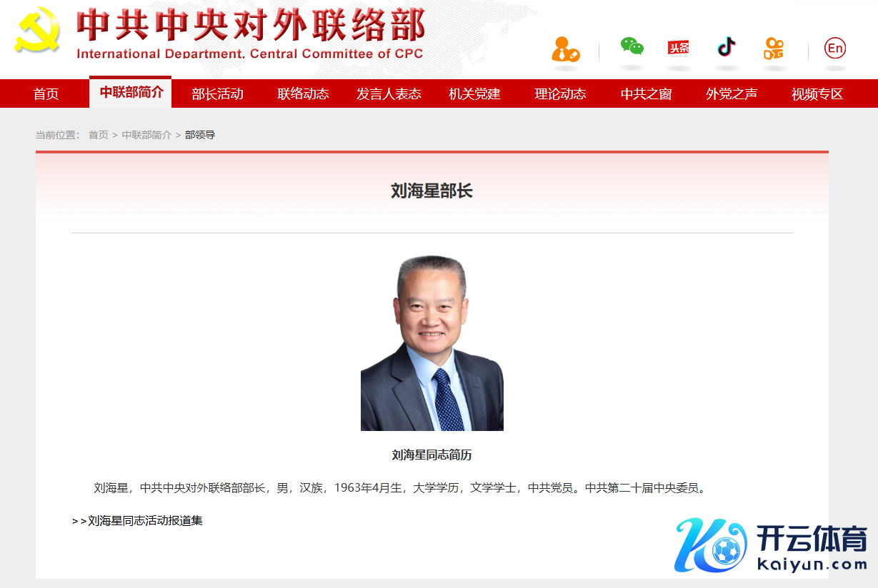 刘海星已任中共中央对外荟萃部部长刘海星已任中共中央对外荟萃部部长