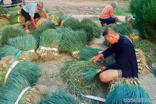 村民正在分拣葱花。